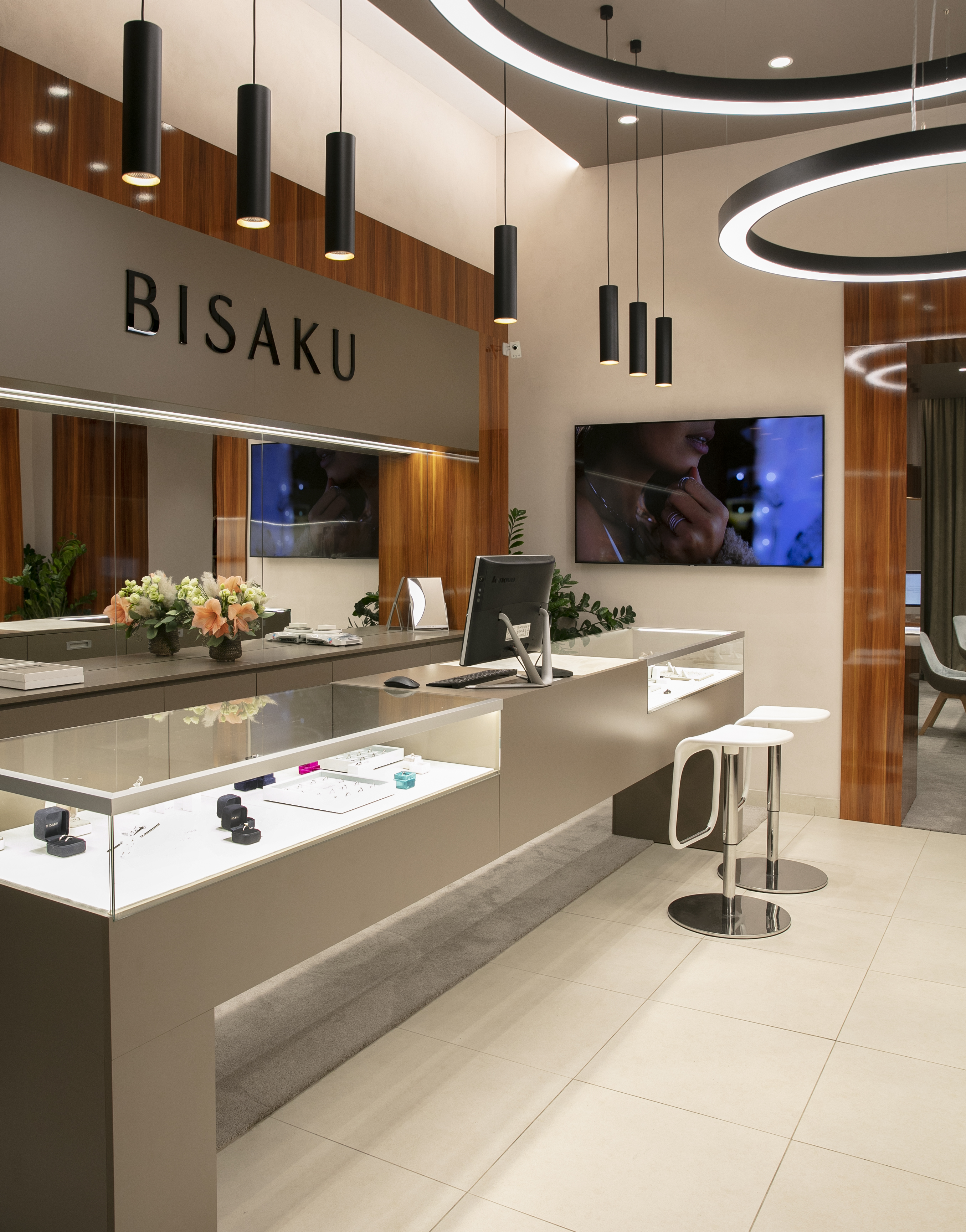 V BISAKU se vše točí kolem detailu – ať už jde o prsten, atmosféru v prodejně nebo technologii, která zajišťuje bezpečí a dokonalý dojem z prostoru. Ve všech čtyřech pobočkách – v Praze, Brně, Vídni a Bratislavě – jsme realizovali řízení kamerového systému, zabezpečení a osvětlení.